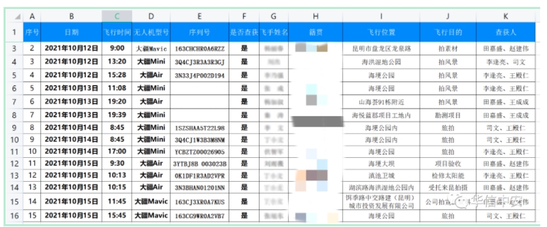 图为:云南昆明COP15会议(10月11-15日)低空安全防控执法.查处统计表