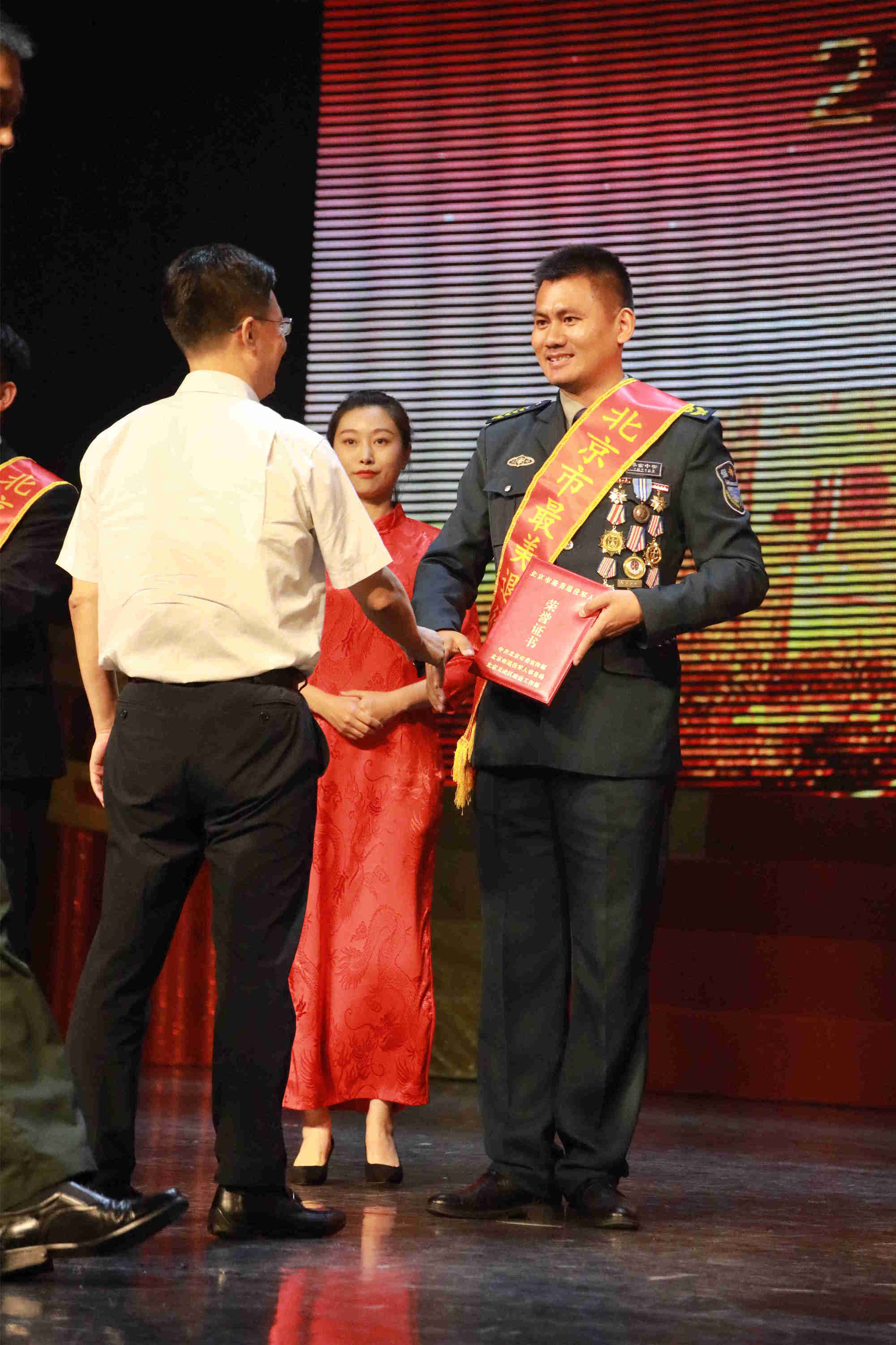 2021年度北京市"最美退役军人"发布仪式于6日晚在民族文化宫举行。北京市副市长杨晋柏出席发布仪式,并为李贤宝等6名北京市"最美退役军人"称号获得者颁发证书。