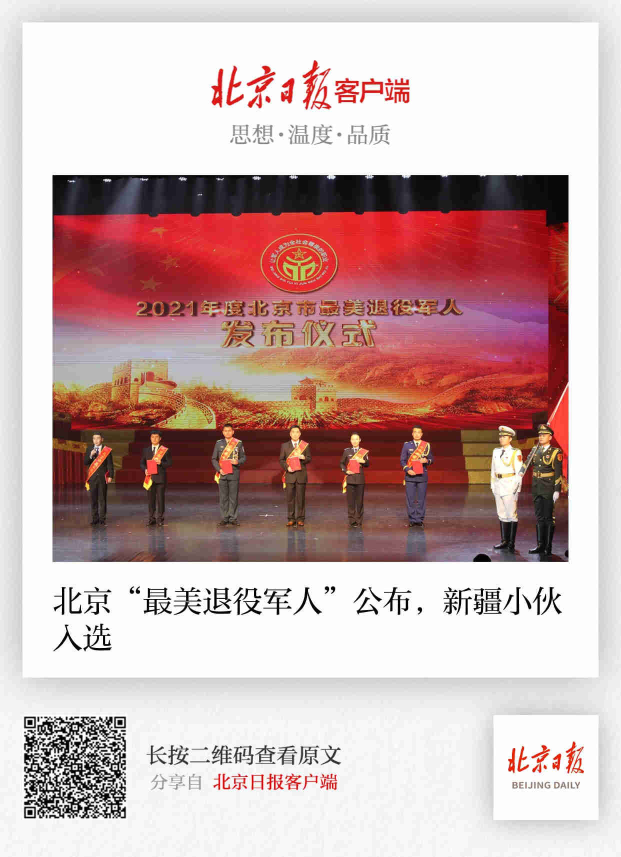 北京日报客户端:北京"最美退役军人"公布,新疆小伙入选