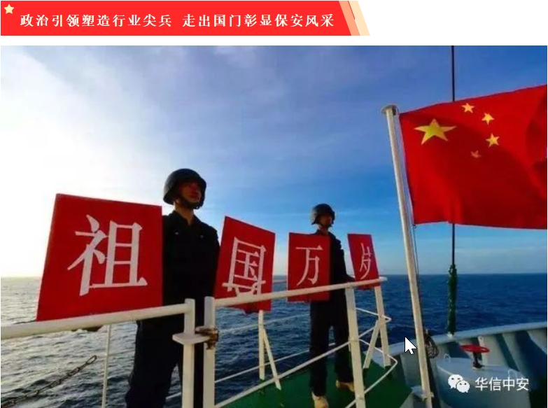 2011年公司响应国家"走出去"战略,为中国驻外机构和企业提供安保服务。当时中国远洋货轮为避免索马里海盗袭击,不惜重金雇用外国武装保安护航。为保障中国海上运输利益,华信中安集团组建了境外安保团队,开展海上武装护航业务。很多中国远洋运输公司在了解华信中安有党组织、海上武装护航队员全部是党员、退伍兵后,直接将业务交给了公司,并对公司的党建和思想政治工作体系产生了浓厚的兴趣,多家公司与华信中安结成了党建对子。近十年来,海外党总支坚持开展牢记国格、彰显军格、树立人格、维护司格的"四格"教育,打造政治过硬、专业一流的海外团队。党总支书记、政委李先喜组织海外各支部因地制宜开展党建活动,与客户密切沟通,组织分散党员接受客户党组织领导,与中国驻外大使馆和驻外企业共同开展党建工作。党组织通过微信与党员和每个员工联系,组织学习教育,开展思想政治工作,掌握每个员工的思想和工作底数,及时解决存在的问题和队员疑虑。船舶护航面对的是武装海盗,华信中安海上武装护航队员全部配备了制式的军用武器。党委和海外党总支承担主体责任,坚持党管队伍、党管武器,严格落实武器操作与管理规定,确保人员和武器安全。截止到2020年12月,华信中安海上武装护航总队为中国及国际商船航行于海盗出没高危地区的中国船舶执行了7600多次护航任务,其中护卫装运"特资"船舶100多个航次,护航里程980亿吨海里,护卫和培训船员约17万人次,期间共驱离海盗骚扰92次,开枪击退海盗袭击61次,始终保持"零失误、零投诉"的佳绩。累计为中国远洋海运企业节省护航费用8000余万美元。原中国驻斯里兰卡大使馆吴江浩大使指出,"华信中安武装护航队员与斯里兰卡武装保安共同护卫中国远洋船舶,体现了中斯两国高度的政治互信。"