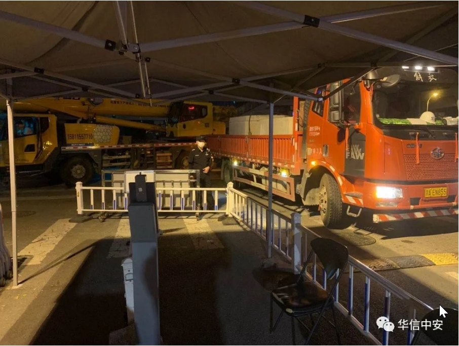 自疫情爆发以来,华信中安驻国货航项目保安队,在保安运营管理中心领导下,积极部署防疫方案,夯实疫情防控措施,坚守岗位严防死守,在这场大考中用逆行诠释初心,以决胜践行使命,坚守在当前首都输入性新冠肺炎疫情防控的最前沿。防疫期间,属地货运公共区派出所对辖区内疫情防护工作高度重视,多次莅临保安队进行工作指导及科学防控知识宣传,派出所民警对华信中安各项防疫措施和落实情况给予高度评价,同时要求保安队员们充分认识到防疫责任重大,加强联防联空,坚决打赢疫情防控阻击战。23点23分,华信中安驻国货航邮局AB门保安员依然在为运输货物的车辆开关大门而忙碌着。